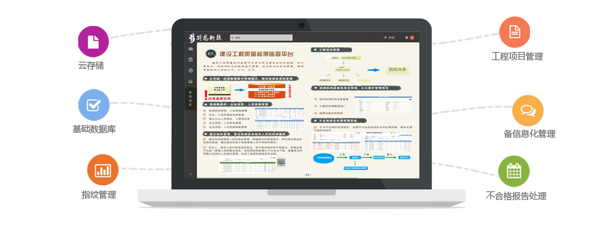 建設工程質量檢測監管平臺是利用當前先進的云存儲、云計算技術,將檢測機構的數據集中管理,規范檢測業務的管理,確保質量檢測工作的公平、公正、公開。
