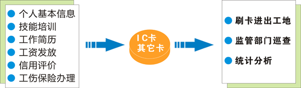 勞務分包企業和工程項目為單位采集建筑行業從業個人信息,并將信息寫入IC卡,建立從業人員個人檔案。在工作過程中,監管系統隨時更新IC卡內的信息,確保信息的準確。