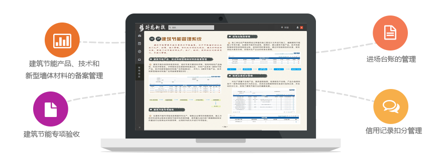 建筑節能管理系統主要是對節能備案,關于節能墻材的企業進行生產、銷售、施工管理,并形成專項驗收報告、建立材料進場臺賬,實現了對節能材料生產、出廠、檢測、使用的全過程信息化、系統化管理。