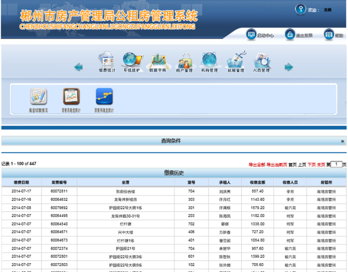 租金收繳統(tǒng)計(jì)查詢